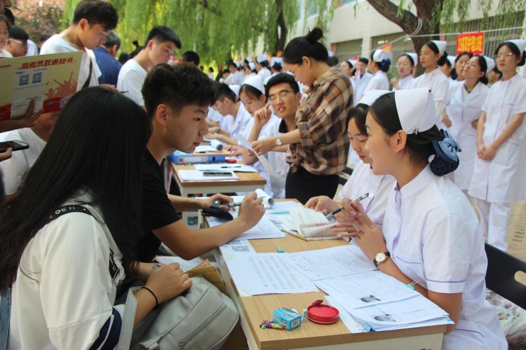 为了迎接新生到来,各系结合专业特色,开展了创意十足的活动,受到了新生和家长的欢迎。护理系开展“传承书库”活动,已经毕业的学长学姐们将自己用过的教材捐出,经过收集、整理和补全之后,发放到新生们手中,作为他们的参考教材;医学系设置了“校园摆渡车”,为学生和家长提供“走进聊职”专属路线;经济管理系为学生和家长免费提供饮用水和饮料,并带领新生参观电商基地,介绍专业特色;校园电视台也准备了“聊职朋友圈”,让新生在入学时留下难忘的一笔,为崭新的大学生活记录第一个美好瞬间。
