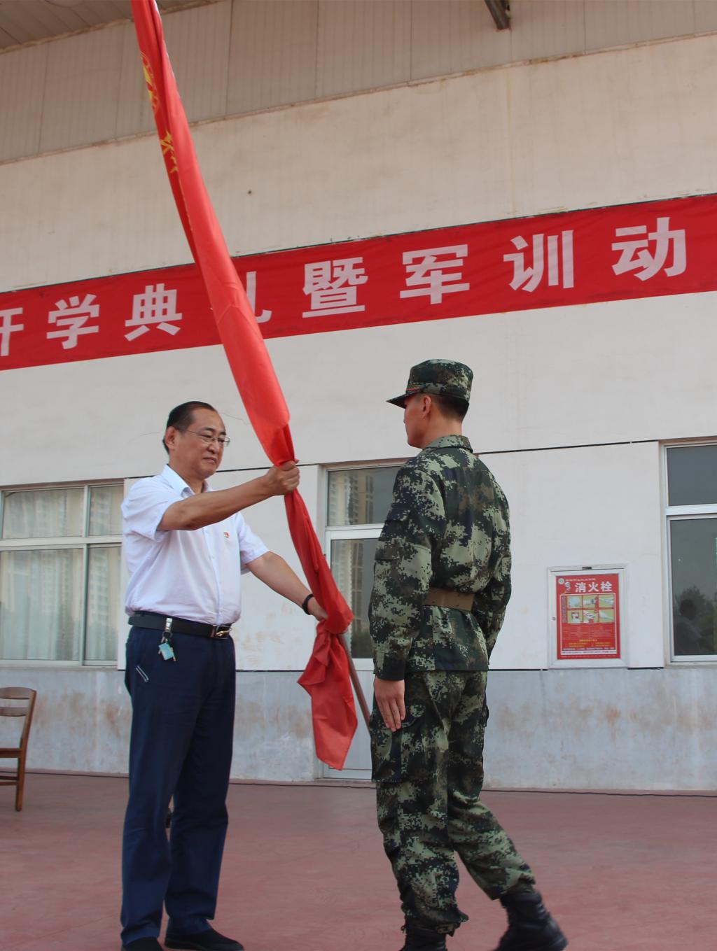 党委副书记程学武向军训团授旗。