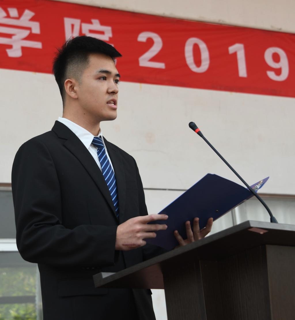 教师代表思政部孙剑、老生代表医学系董博超、新生代表护理系束秋涵分别发言。