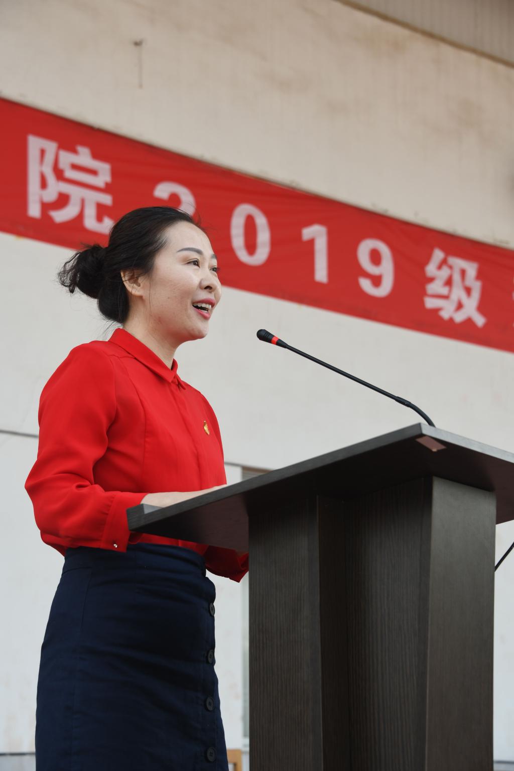 靳凤莲向大家简要介绍了学校的基本情况,聊城职业技术学院有着一支乐于奉献、以校为家的高学历高素质的名师队伍,拥有4名全国优秀教师、6名省级教学名师,3名省级青年技能名师,1个国家级教师教学创新团队,6个省级优秀教学团队。靳凤莲强调,劳动光荣、技能宝贵,今日是青年学子,明日便是行业先锋、社会栋梁。她希望同学们牢记师长的嘱托,做好规划,打好基础,学好本领,在新时代的舞台大展拳脚。