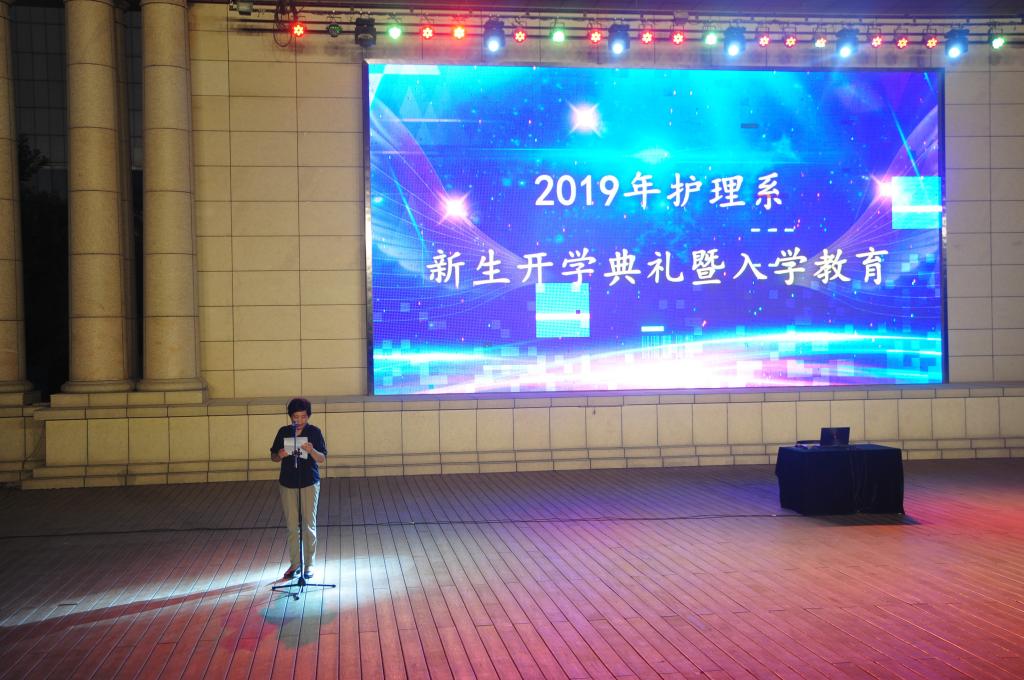 9月3日,护理系在海源广场举行了2019级新生开学典礼暨入学教育讲座,党委委员、副院长孟凡云,护理系负责人曹庆景,护理系教师代表及2019级1800余名学生参加。护理系党总支负责人李娜主持活动。