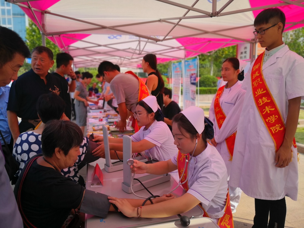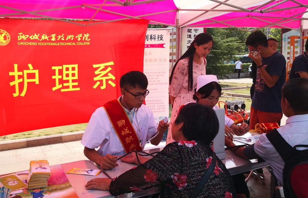 现场,学校机电工程系飞创科技团队带来的山东省大学生科技创新大赛获奖作品“无人驾驶智能车”,引来现场嘉宾及市民的称赞。护理系和医学系的医疗救援队,面向广大市民开展健康咨询和义务测量血压等服务,受到广大市民的欢迎和好评。