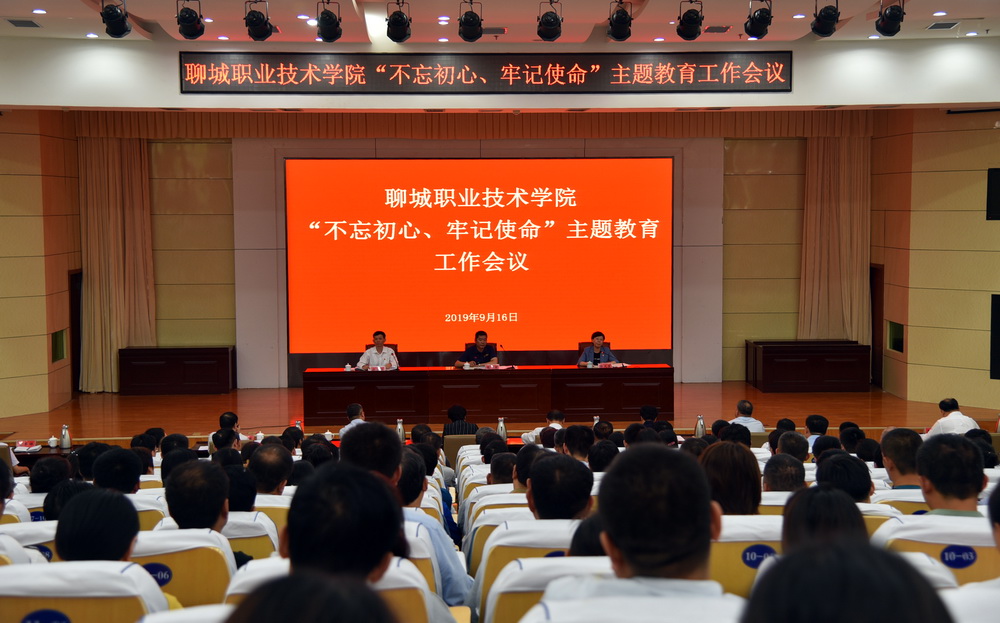 9月16日下午,聊城职业技术学院召开“不忘初心、牢记使命”主题教育工作会议。大会对学校“不忘初心、牢记使命”主题教育工作进行全面安排部署。市委第十六巡回指导组组长、市教体局副局长张宏图出席并讲话。学校党委书记靳凤莲作动员讲话,党委副书记、院长徐龙海主持会议,第十六巡回指导组成员、学校领导班子、全体党员参会。