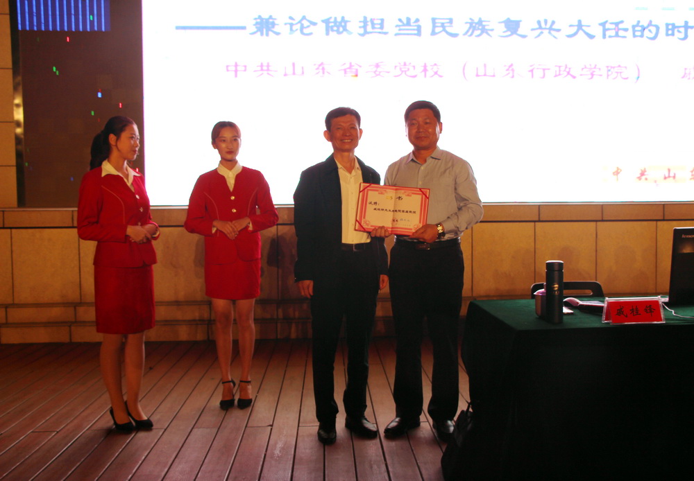 讲座前,聊城职业技术学院院长徐龙海向戚桂锋教授颁发了客座教授证书。