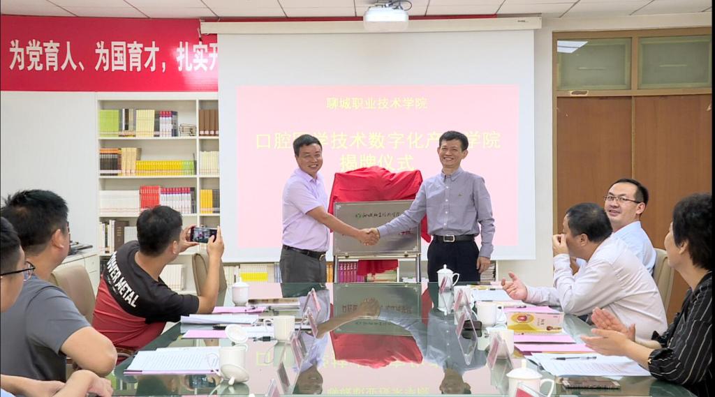 9月22日下午,聊城职业技术学院口腔医学技术数字化产业学院揭牌仪式举行。聊城职业技术学院党委副书记、院长徐龙海,山东义齿制造行业协会会长、青岛华新华义齿技术有限公司董事长王华新,聊城职业技术学院党委委员徐洪祥,青岛华新华义齿技术有限公司副总经理都正杰、董事长助理马振群等参加活动。党委委员、副院长孟凡云主持仪式。