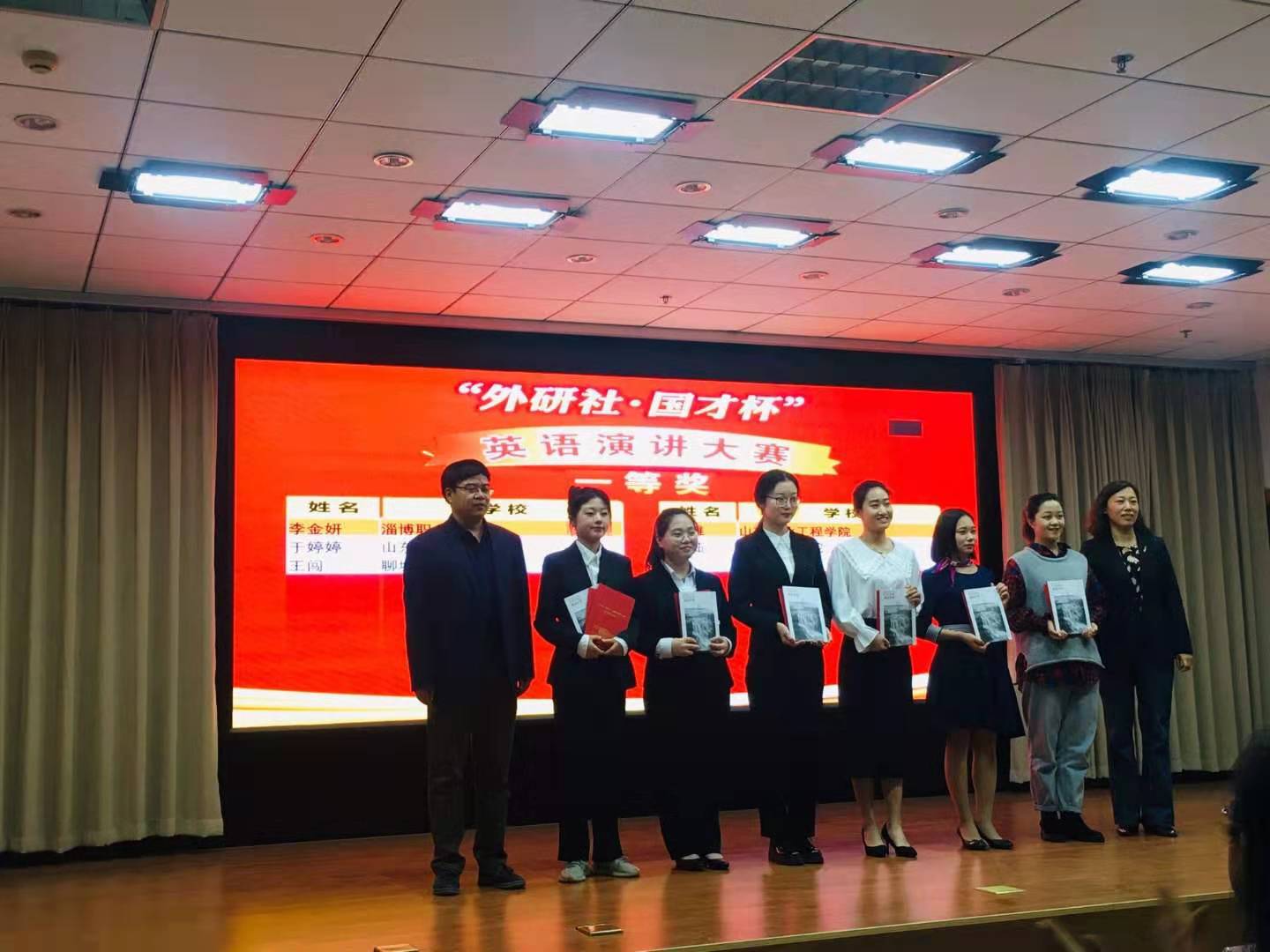 “国才杯”全国英语演讲大赛山东赛区比赛由山东省教育厅主办,山东省外语职业教育专业建设指导委员会、山东商业职业技术学院承办。此次比赛共有全省66所高职院校的66名学生参赛。整场比赛由定题演讲、外籍评委提问和即兴演讲三个环节组成。主要考查学生的英文口语表达、翻译能力、逻辑分析能力及国际视野。这是我校自参与该比赛以来获得的最好成绩。