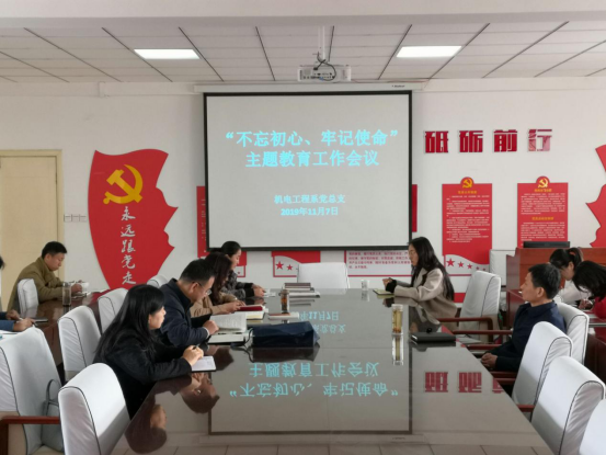 11月7日下午,党委副书记、院长徐龙海深入机电工程系调研“不忘初心、牢记使命”主题教育工作,并就如何以主题教育为契机进一步提升机电工程系各项工作再上新台阶进行指导。