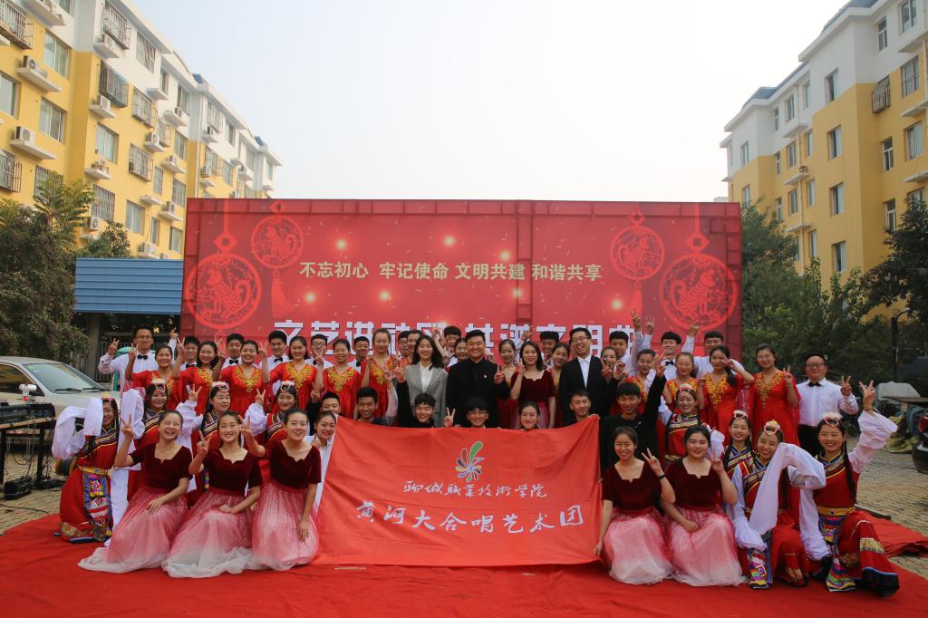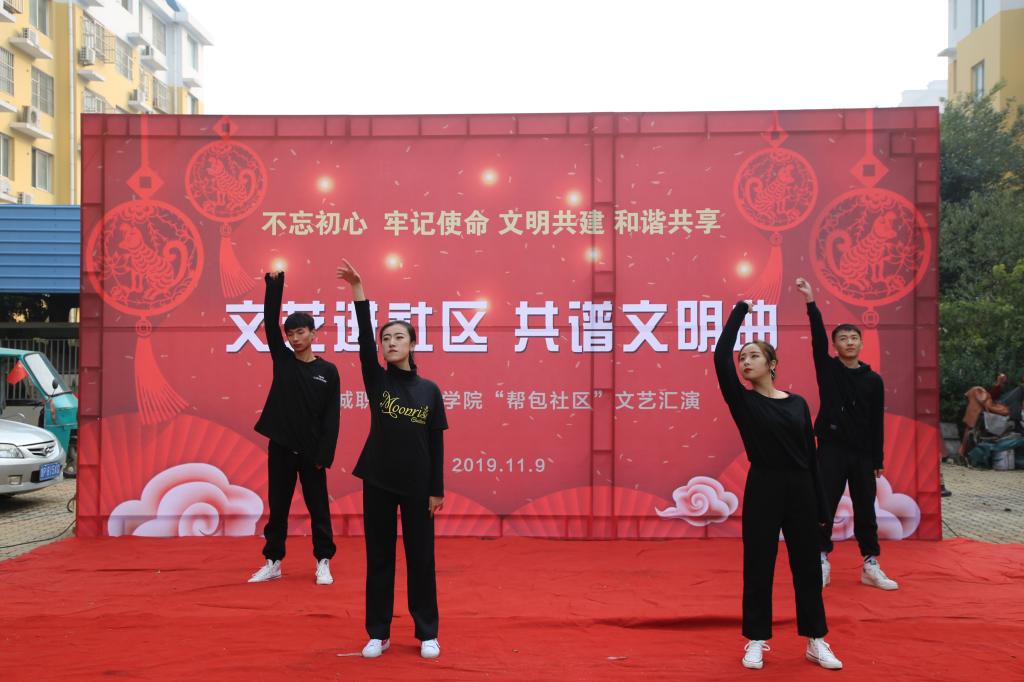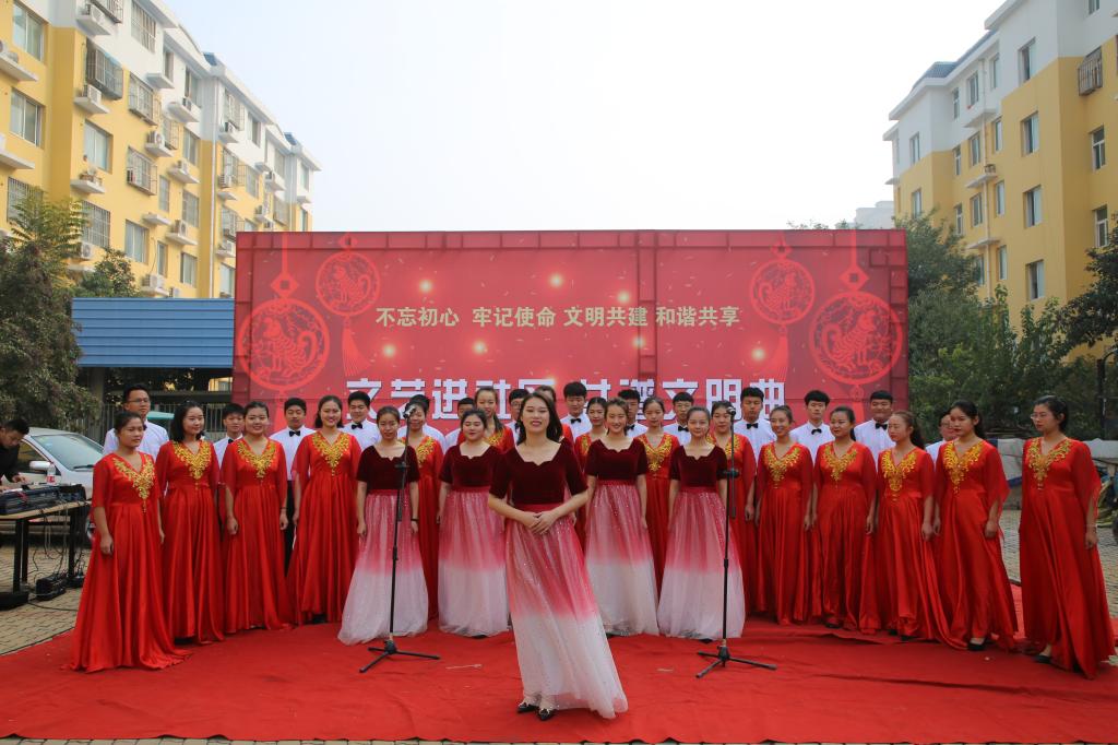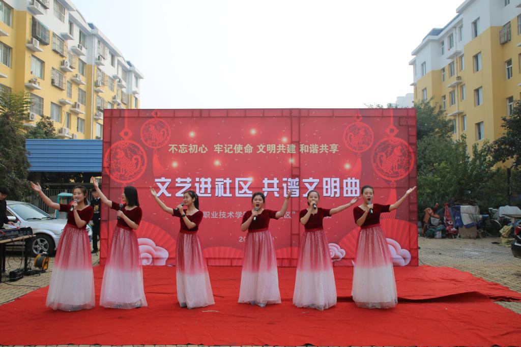 为深入扎实开展社区帮包工作,丰富居民群众的精神文化生活,传承红色基因、推进文明创建,11月9日,由聊城职业技术学院和东昌府区振兴社区联合举办的《文艺进社区,共谱文明曲》文艺演出活动走进振兴社区怡香园小区,300余名居民观看了演出。