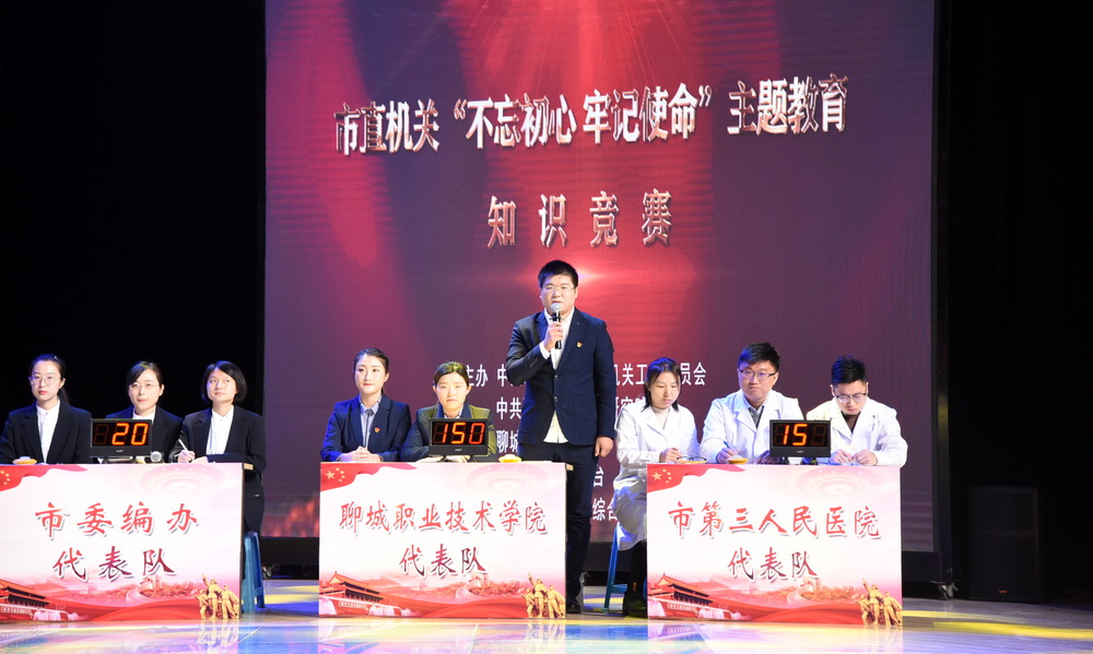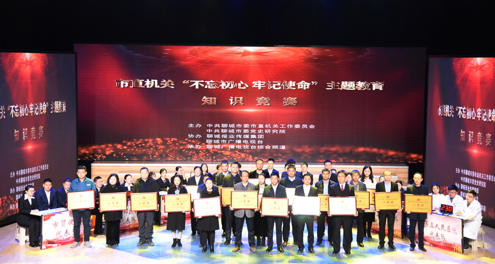 12月1日,聊城市直机关“不忘初心、牢记使命”主题教育知识竞赛决赛在聊城电视台演播大厅举行。聊城市委副书记李春田,聊城市委常委、秘书长、市直机关工委书记陈秀兴出席活动。聊城职业技术学院代表队过关斩将,获得一等奖第一名。