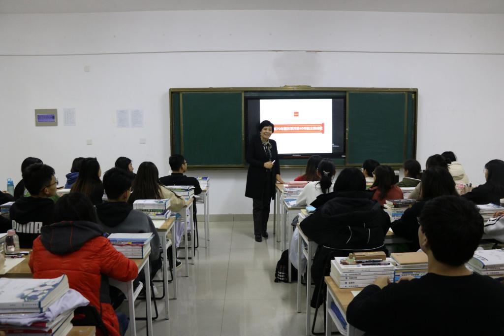 12月5日,学院党委委员、副院长孟凡云为学校医学系2018级药学四班学生讲授形势与政策课。