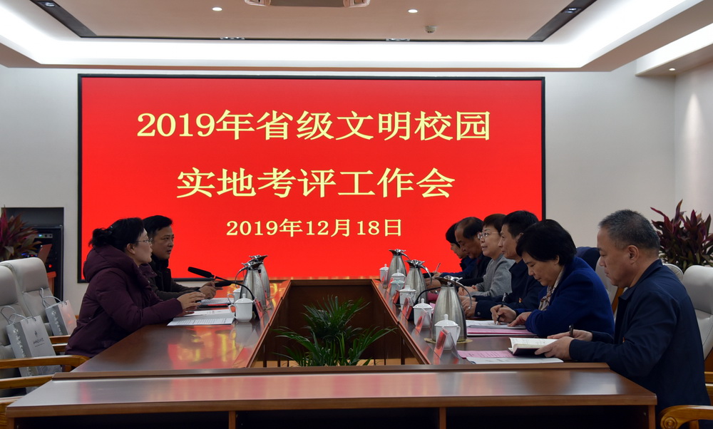 徐龙海以《不忘初心牢记使命,扎实推进文明创建》为题,从思想道德建设、政治建设、文明创建、文化育人、阵地建设五方面向考评组汇报了学校省级文明校园创建工作。