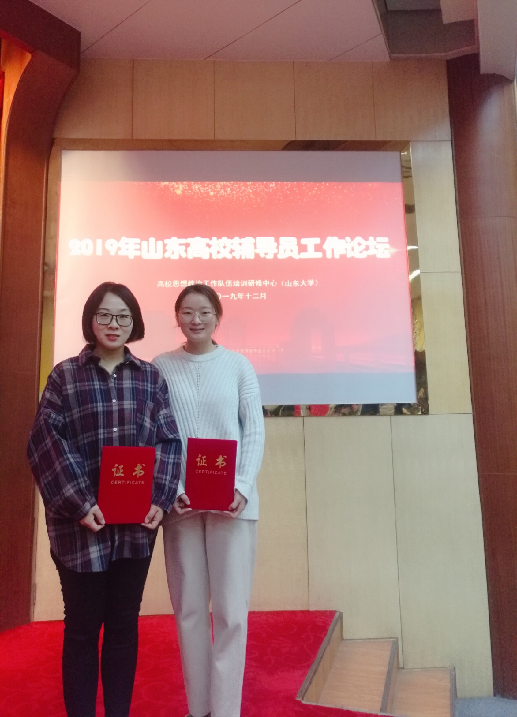 12月26日,由山东省委教育工委主办、高校思想政治工作队伍培训研究中心(山东大学)承办的2019年山东高校辅导员工作论坛在山东大学(中心校区)举行。学校经济管理系辅导员许燕的论文《工匠精神在辅导员队伍中的培养与传承路径》荣获二等奖,旅游管理系辅导员陶维伟的论文《以班级文化建设打牢育人成才的思想基础》获三等奖。