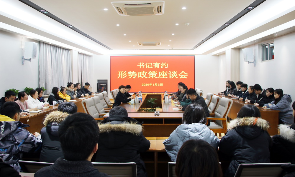 12月27日,学校党委书记靳凤莲为旅游管理系第二届中国进口博览会高端政务礼仪服务组师生代表讲形势与政策,党委委员、学生工作部部长刘雪巍参加。