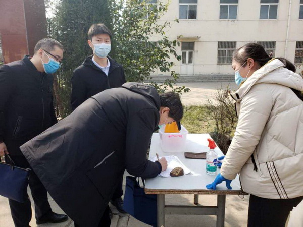 在茌平振兴街道北关社区、医光医疗器械有限公司,教师任伟、孙玉帅在市派茌平区4组在组长付亮的带领下,与街道分管疫情工作的负责同志、社区书记、企业负责人、在岗员工分别进行详细交流,并对外来人员管理、疫情防控措施落实、企业复工复产提出了明确要求和改进意见。在杜郎口镇鲍庄村,实地考察了该村的防疫布控情况、乡村春耕备耕情况以及6家村办企业复工运行情况,明确了下一步的工作重点。