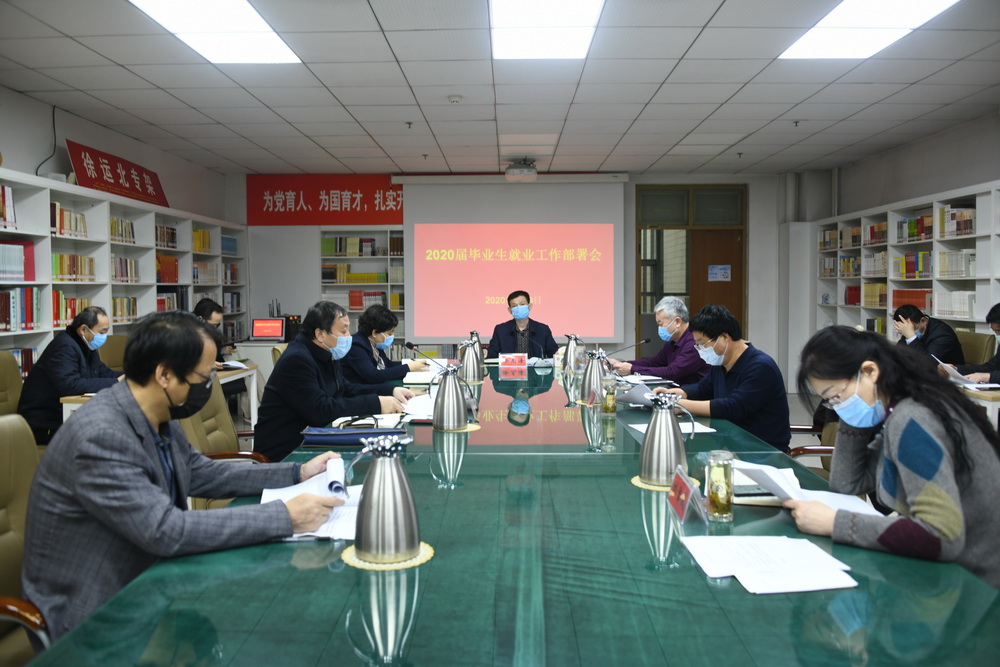 党委委员徐洪祥结合2019届毕业生质量报告分析总结学校2019届毕业生就业工作,通报了当前学校正在举办的毕业生春季网络招聘会的相关事宜。