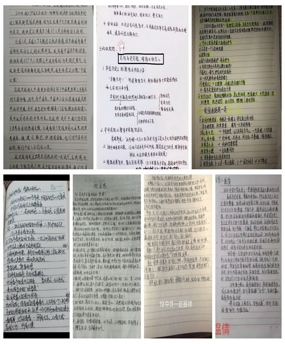 思政部充分利用QQ学习群、学习通平台组建的24个学习群组织学生进行线上主题研讨,同学们展示学习笔记、发表学习感受、进行交流发言,分享学习心得和作为中国人的自豪。