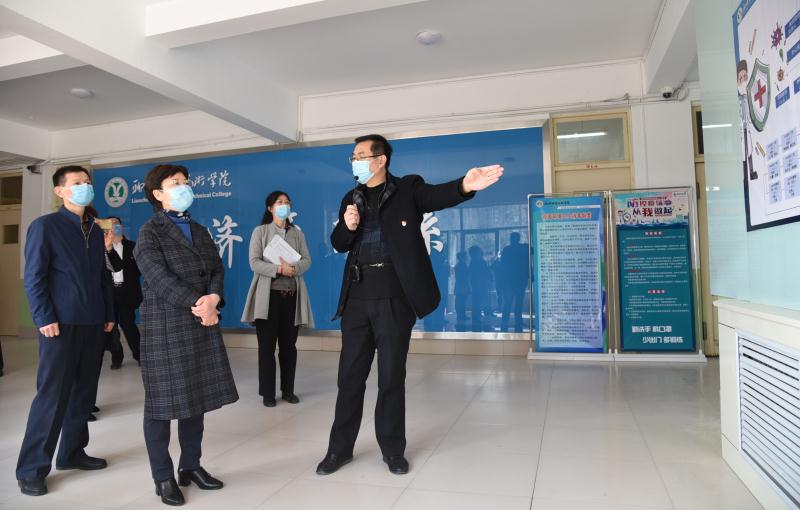 参会人员首先对医学系、护理系、经济管理系教学楼进行了现场观摩,相关系部负责人对本系疫情防控工作和学生返校有关准备情况做了讲解。