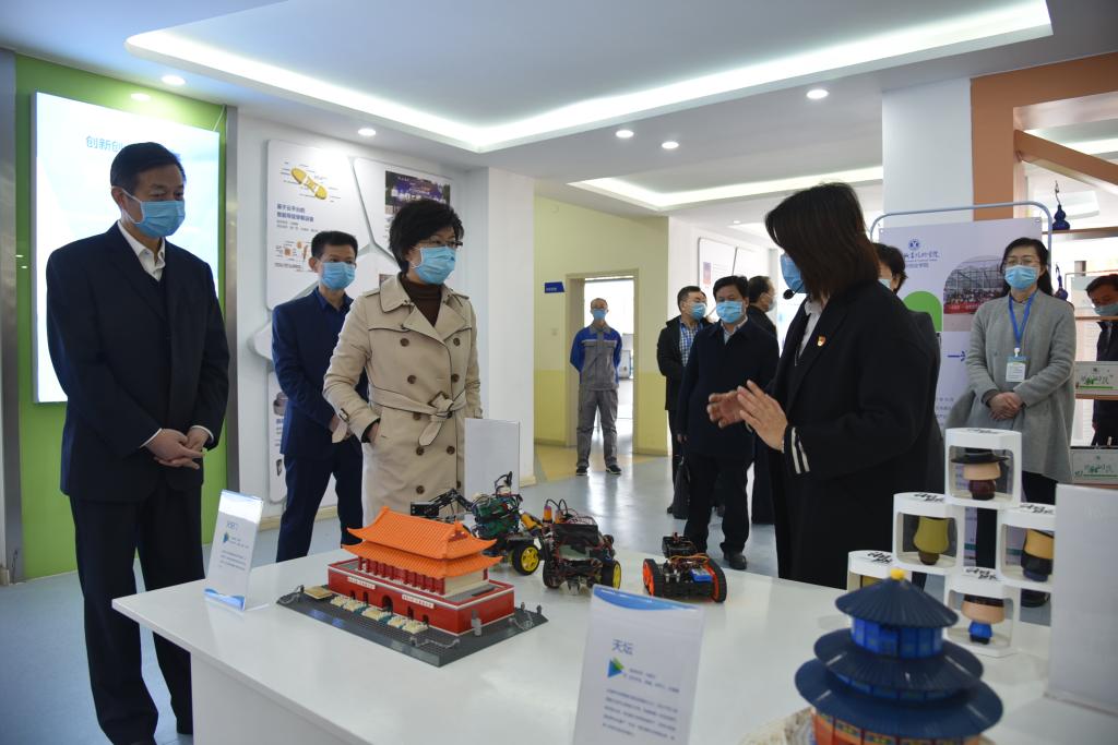 会前,李长萍实地考察了学校的消防实训室、疫情防控网格化管理、线上教学平台和创业学院。每到一处,她都仔细聆听有关人员的讲解,并详细了解实训过程和我校学生参加全国大赛获奖情况。