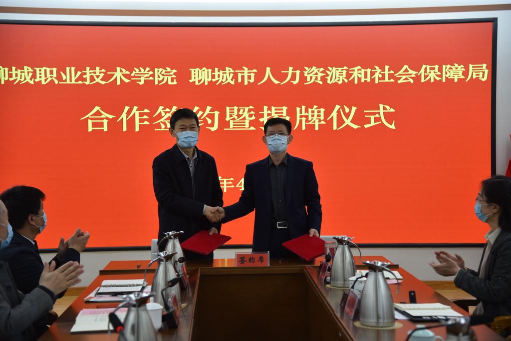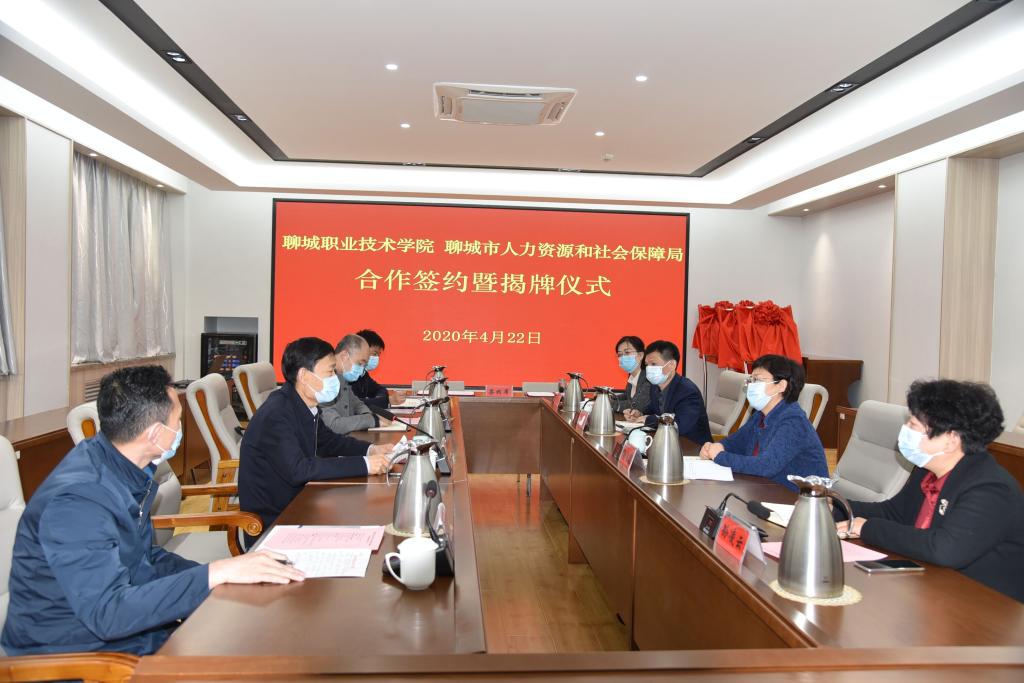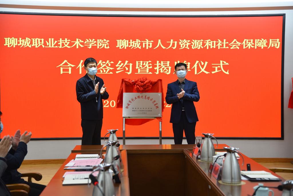 4月22日,聊城职业技术学院与聊城市人力资源和社会保障局共建创业孵化高校示范基地、创业课程研发基地、创业大学创业培训示范基地签约暨揭牌仪式在我校隆重举行。