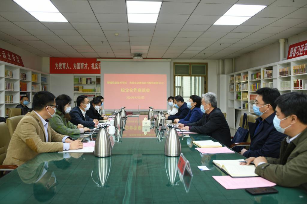 靳凤莲对青软实训教育科技股份有限公司领导来访表示欢迎,并介绍了学校发展情况及学校未来三年的发展规划和目标,希望今后加强与青软实训教育科技股份有限公司的深入合作。