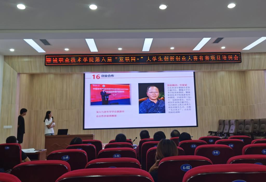 8月5日,聊城职业技术学院第六届“互联网+”大学生创新创业大赛省赛项目培训会在医学报告厅举行。创新创业教育全球联合教研室常务副理事长兼秘书长、创新创业就业处处长、全国创业指导师和咨询师、全国高级就业指导师明兆凤教授,创新创业教育全球联合教研室专职秘书长,北京人人出彩教育科技有限公司高级专家郭叶峰,北京航天航空大学工程硕士、原山东商业职业技术学院“机电与汽车学院”院长王建平以及各系指导老师、参赛项目选手50余人参会。