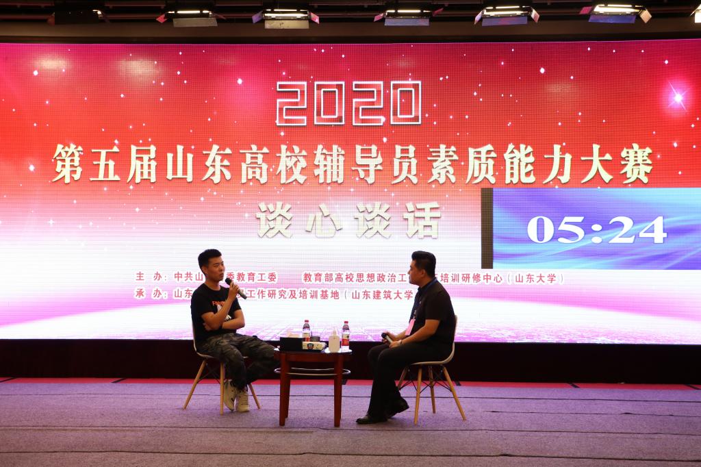 8月24日,由中共山东省委教育工委、教育部高校思想政治工作队伍培训研修中心(山东大学)主办,山东高校辅导员工作研究及培训基地(山东建筑大学)承办的第五届山东省高校辅导员素质能力大赛决赛在山东济南举办。本次大赛共有120余所高校参赛,经过线上初赛基础知识笔试、案例研讨两个环节的选拔,共41人入围现场决赛。我校辅导员张博文以总分第五名,职业院校第一名的成绩,突破重围,挺进决赛。