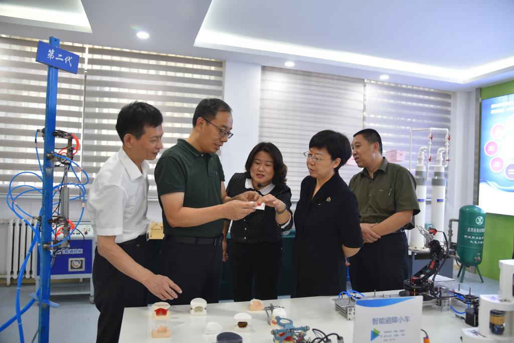 冯继康一行先后来到学校先进制造中心、校企共建消防实训中心、医学系党员活动室、DR实训室、特种作业人员实操考试中心、生命科学馆、创新创业学院、鲁西革命史馆、VR展示(信息中心)等处,就高校党建、实习实训、学生思想政治教育、创新平台建设等工作进行了实地调研指导。