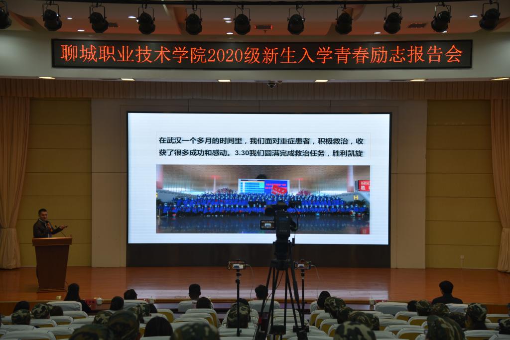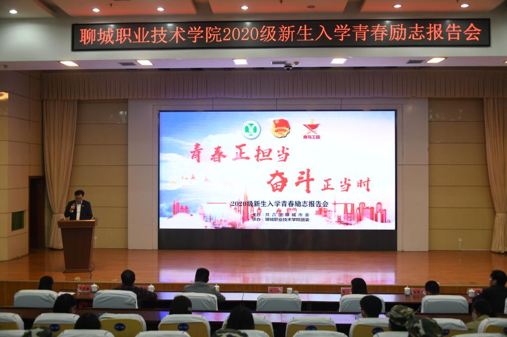 为加强2020级新生思想政治教育,激励和引领广大青年学子学习青年榜样事迹,做新时代有为青年。10月15日晚,由共青团聊城市委主办,聊城职业技术学院团委承办的“青春正担当 奋斗正当时”2020级新生入学青春励志报告会在图书馆报告厅隆重举行。