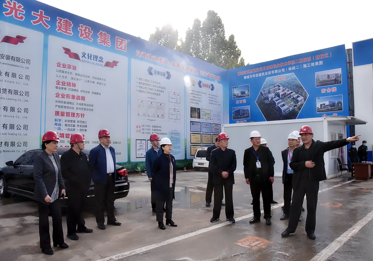 10月21日,在党委书记靳凤莲带领下,校领导程学武、刘庆起、孟凡云、吕学德、徐洪祥、刘雪巍、米振生等到学校二期项目建设现场,检查督导工程进展情况。