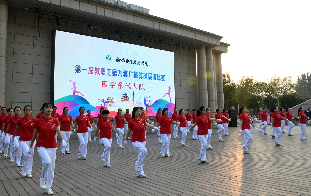 为了推广普及广播体操健身制度,推动全民健身和全民健康深度融合,推进健康聊职建设,11月12日下午,聊城职业技术学院第一届教职工第九套广播体操展演比赛在海源广场举行。