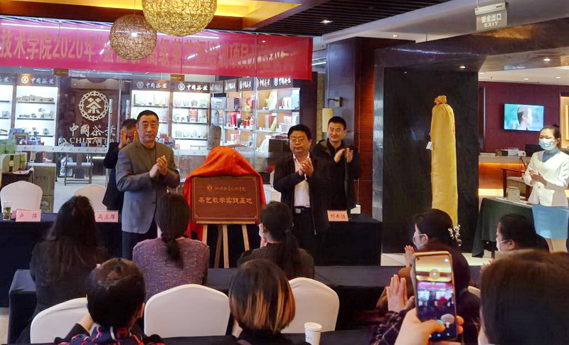 杜新亭和吕学德共同为聊城职业技术学院茶艺教学实践基地揭牌,46名茶艺工作者参加了开班式。