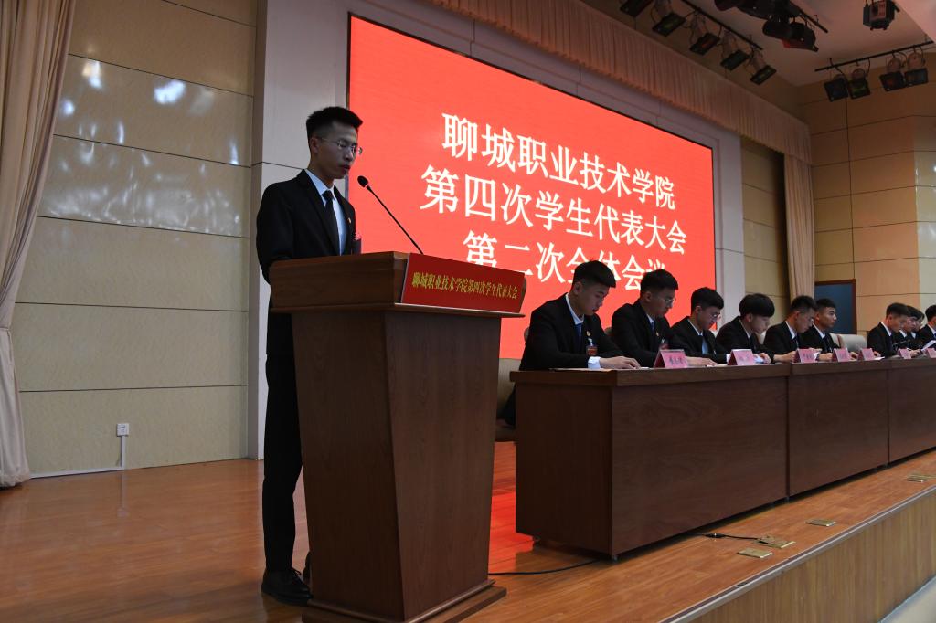 最后,任伟宣布聊城职业技术学院第四次学生代表大会各项议程顺利完成,全体代表齐唱《团歌》,聊城职业技术学院第四次学生代表大会完美闭幕。