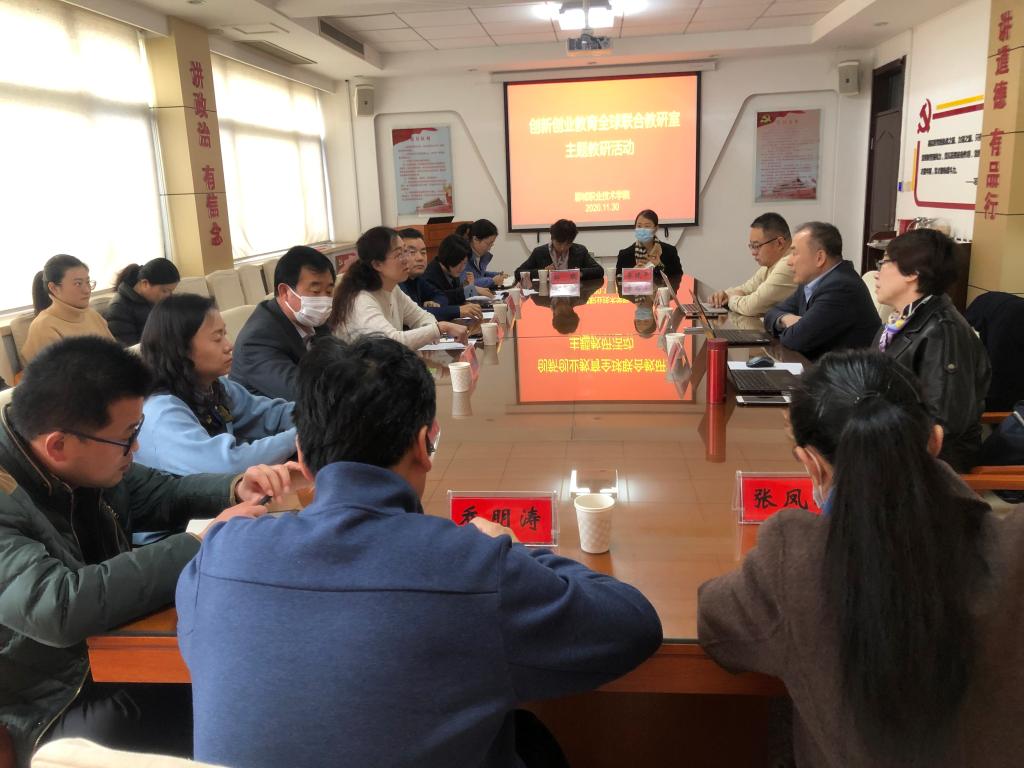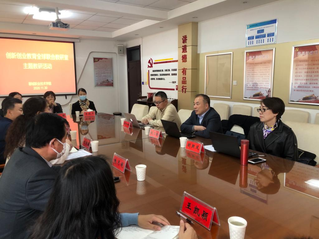 11月30日,2020年创新创业教育全球联合教研室主题教研活动在我校办公楼三楼会议室召开。创新创业教育全球联合教研室轮值理事长、专家委员会主任委员钱乃余,创新创业教育全球联合教研室常务副理事长兼秘书长明照凤,创新创业教育全球联合教研室专职秘书长郭叶峰来校参加活动。聊城职业技术学院党委委员、学工部部长刘雪巍,创新创业学院负责人王增朝,各系党组织副书记及创新创业工作负责教师参加活动。
