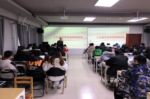 12月11日,党委委员、合作服务处处长徐洪祥以《聚焦远景目标,激发青春力量》为主题,深入解读十九届五中全会精神。为信息工程系学生讲授了一堂深刻的“形势与政策”课。