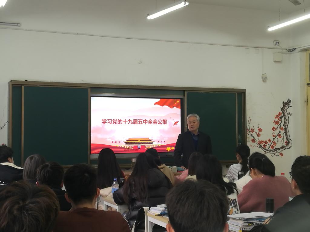 12月11日下午,学院党委委员、副院长刘庆起为机电工程系2019级机电一体化技术专业学生讲十九届五中全会精神。