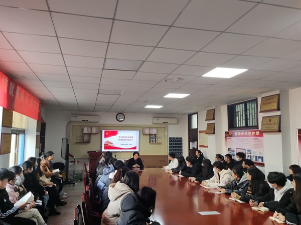 12月16日,党委委员、副院长孟凡云为护理系学生讲授题为《学习贯彻全会精神 争做新时代追梦人》的形势与政策课。