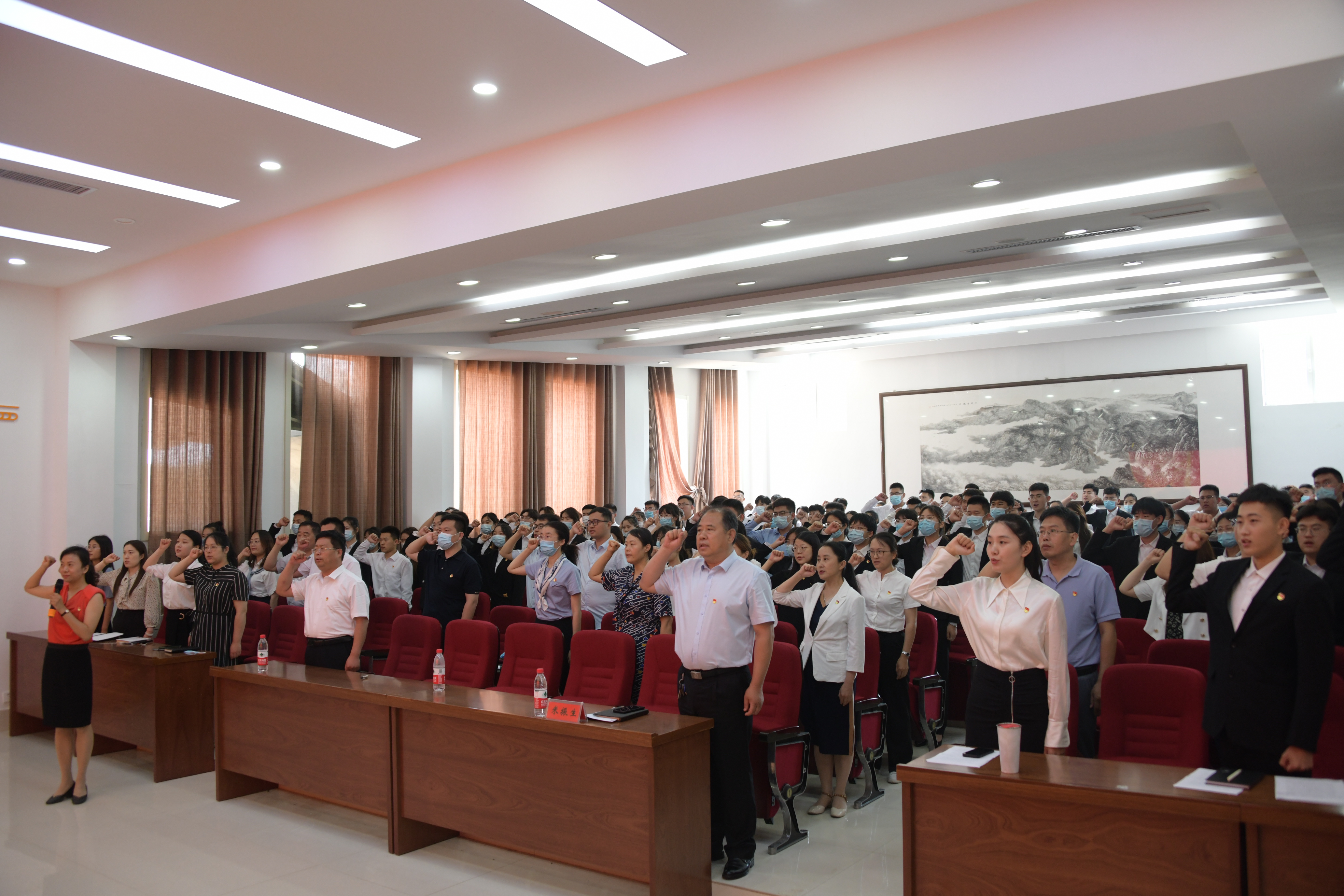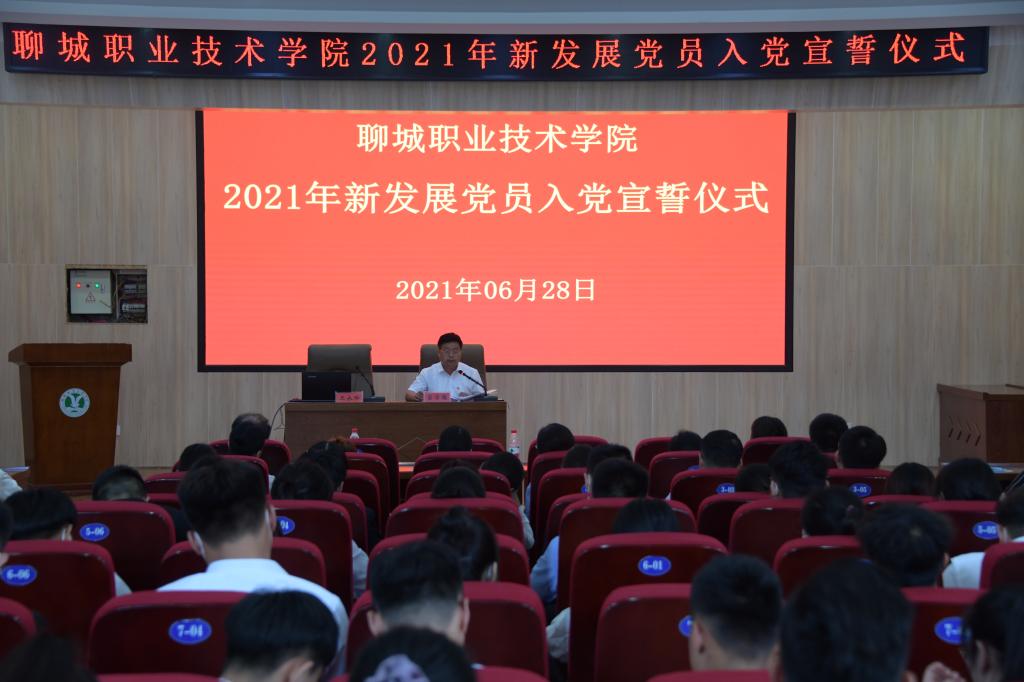 6月28日上午,聊城职业技术学院组织新发展的128名党员入党宣誓。党委委员、纪委书记吕学德主持宣誓仪式,党委委员、组织人事处处长米振生参加活动。