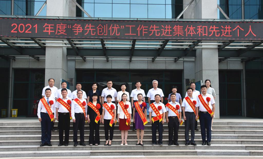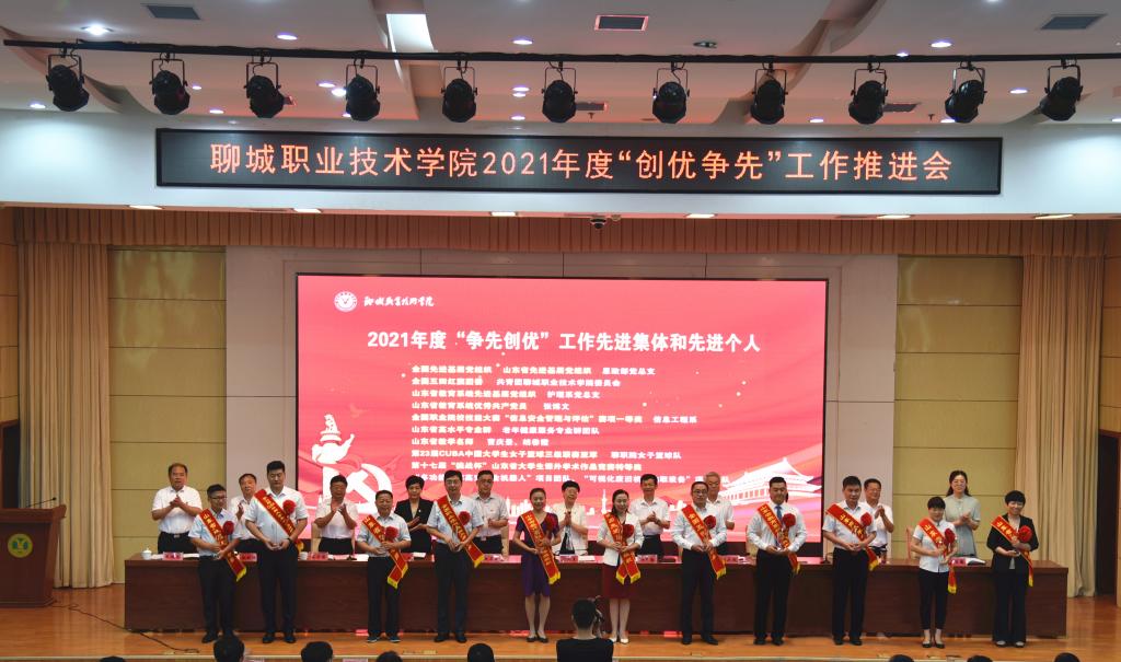 党委副书记赵存吉宣读了《中共聊城职业技术学院委员会关于表扬2021年度“创优争先”工作先进集体和先进个人的决定》。校领导为获奖的先进集体和先进个人代表进行颁奖。