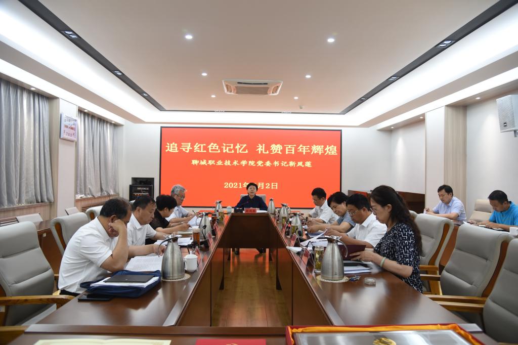 在全校上下热烈庆祝建党百年,学习贯彻习近平总书记在庆祝中国共产党成立100周年大会上的重要讲话精神之际,7月2日,聊城职业技术学院党委书记靳凤莲以《追寻红色记忆,礼赞百年辉煌》为题,为领导班子成员上了一堂生动的党课。