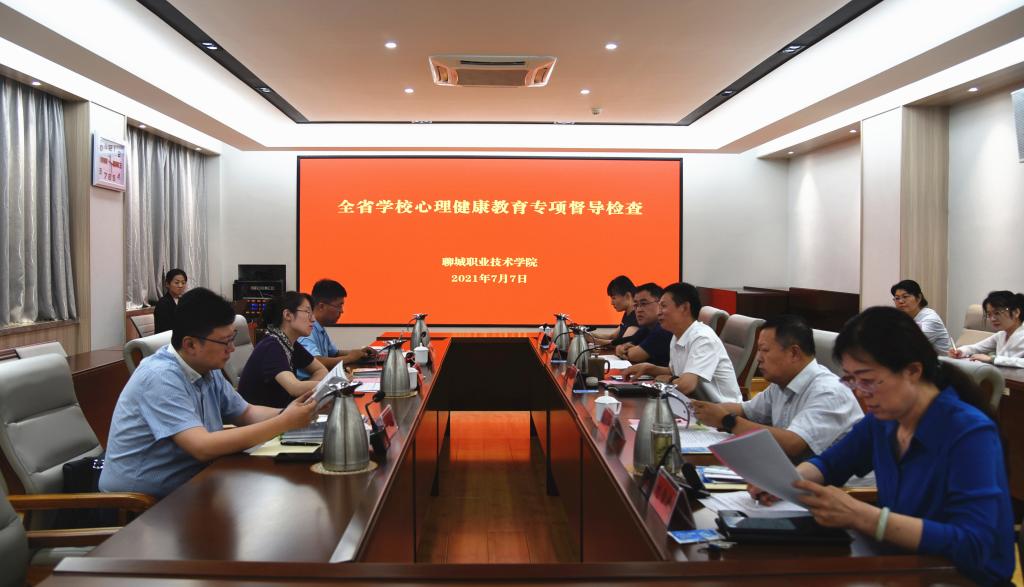 7月7日下午,由山东省教育厅思政处副处长仇宝艳、山东师范大学心理学院副教授,系主任陈亮、齐鲁师范学院学生工作处副处长阴小建组成的全省学校心理健康教育专项督导检查组一行三人,在聊城市教体局副局长徐化忠、聊城市教体局学校组织科科长母凤鸣的陪同下来聊城职业技术学院调研指导心理健康教育工作。