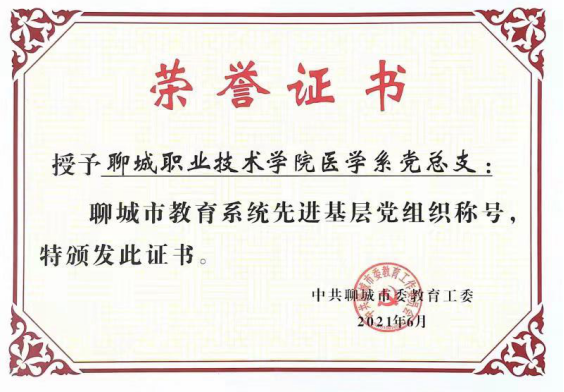 近日,聊城市委教育工委公布了教育系统“两优一先”名单,聊城职业技术学院医学系党总支荣获“聊城市教育系统先进基层党组织”称号,教师庞雪莲、刘倩婧荣获“聊城市教育系统优秀共产党员”称号,信息工程系党总支副书记李晓平荣获“聊城市教育系统优秀党务工作者”称号。