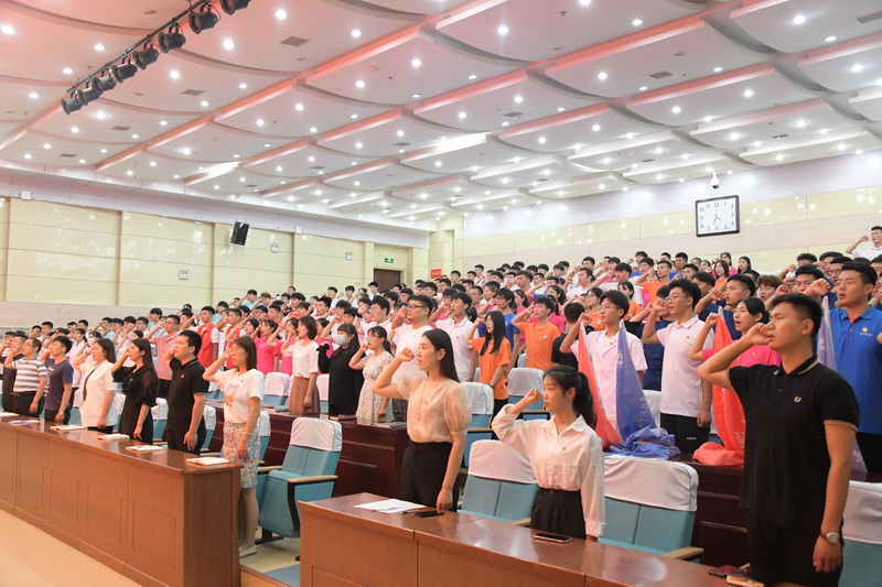 校团委“艺术之声”文艺轻骑兵社会实践团查所以同学发言,并带领全体“三下乡”人员共同宣誓,表示要在社会实践中锻炼自我,服务他人,奉献社会,坚决服从团队指挥,自觉遵守团队纪律,时刻注意自身言行。发扬志愿精神,传播先进文化,永远跟党走,奋进新时代。以昂扬的斗志和优异的成绩为庆祝建党百年贡献青春力量。