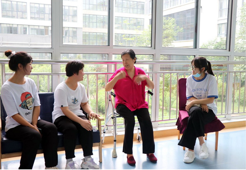 师生一行首先在工作人员的带领下,详细参观了颐养中心的宜居环境、长者居室和各功能室。参观结束后,医养健康卓越工匠班学生被分配到不同的区域,以团队形式进入工作实际场景体验岗位。在陪伴长者活动中,大家与长者亲切地交谈,倾听长者讲述他们在颐养中心的生活以及过去的年代故事,共同感受如今来之不易的幸福生活。