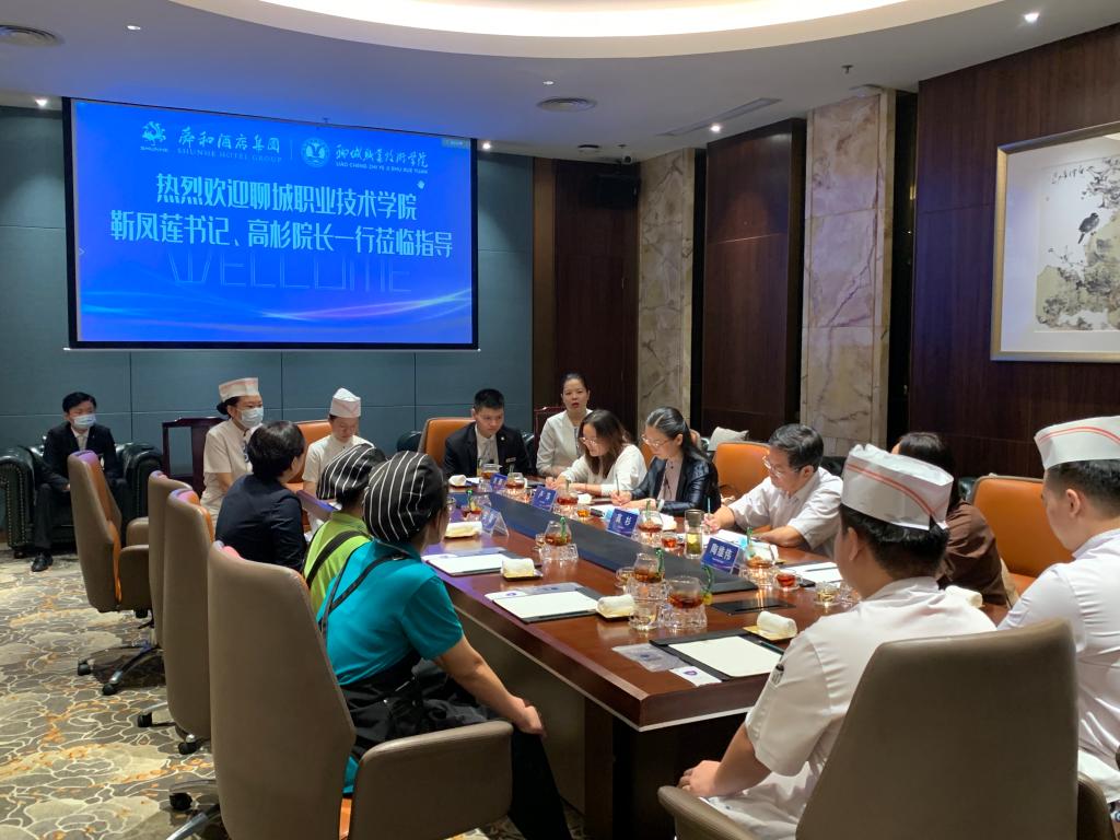 8月12日,聊城职业技术学院党委书记靳凤莲带队到山东舜和酒店集团进行走访,党委委员、副院长高杉、党政办公室、旅游管理系等有关部门负责人参加走访。
