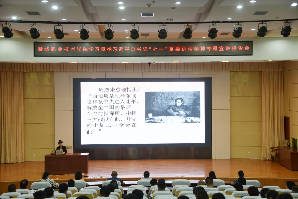 9月15日下午,为深入学习贯彻习近平总书记“七一”重要讲话精神,市委“七一”重要讲话专题宣讲团教育系统宣讲服务队在聊城职业技术学院图书馆报告厅举办《从西柏坡精神的内涵体悟人民力量——学习贯彻习近平总书记2021年“七一”讲话精神》专题宣讲。聊城市教育系统宣讲服务队第七分队宣讲员、聊城职业技术学院思政部副教授尹莉主讲,全校师生党员代表参加活动。