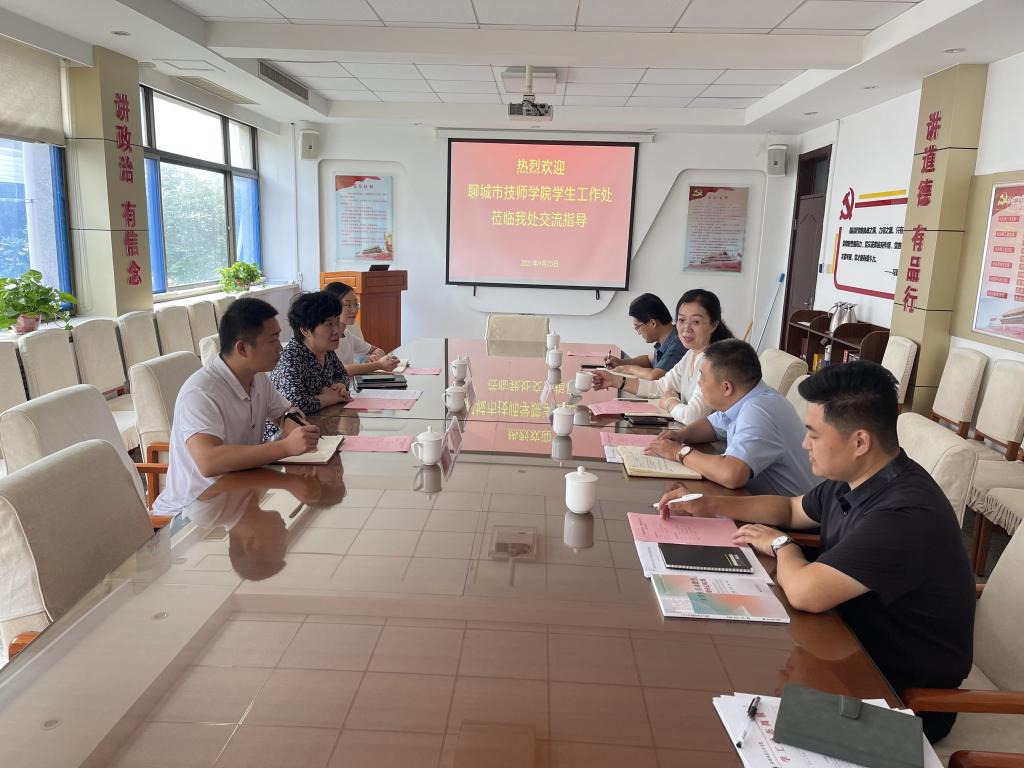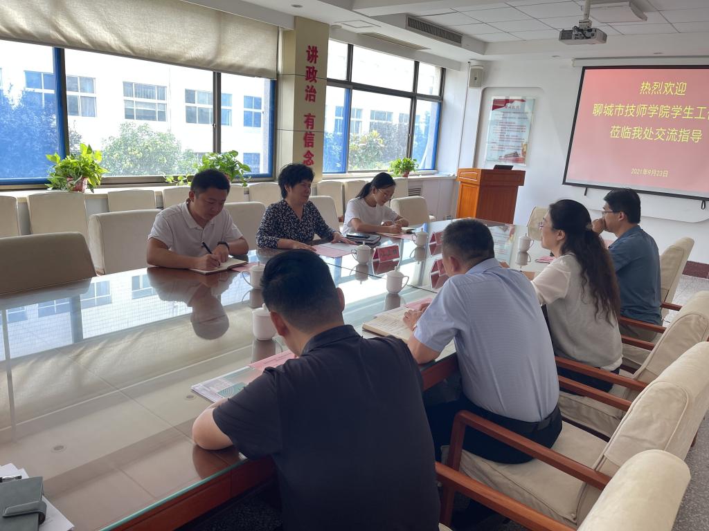 9月23日下午,聊城市技师学院一行三人在学生工作处处长王玉梅带领下,来我校就学生工作进行学习交流。校党委委员、学工部部长刘雪巍主持交流会,学工部相关同志参加交流。