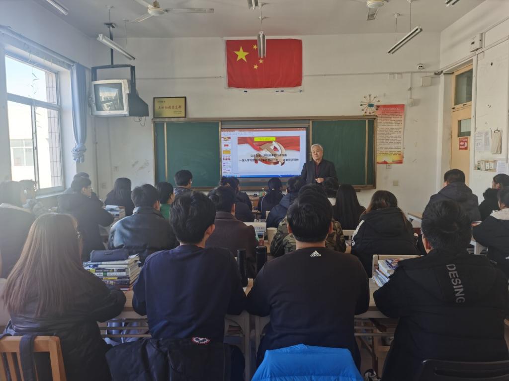 11月11日,学院党委委员、副院长刘庆起为机电工程系学生讲授形势与政策课。