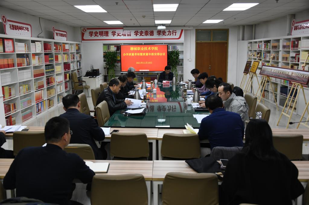 11月10日,2021年度办学质量年度考核工作及质量年报编制工作部署会议在第二会议室召开。党委副书记、院长徐龙海出席会议并讲话。党委副书记赵存吉主持会议。院领导刘庆起、孙凌云、吕学德、高杉、徐洪祥、刘雪巍、米振生,以及相关处室负责人等参加会议。