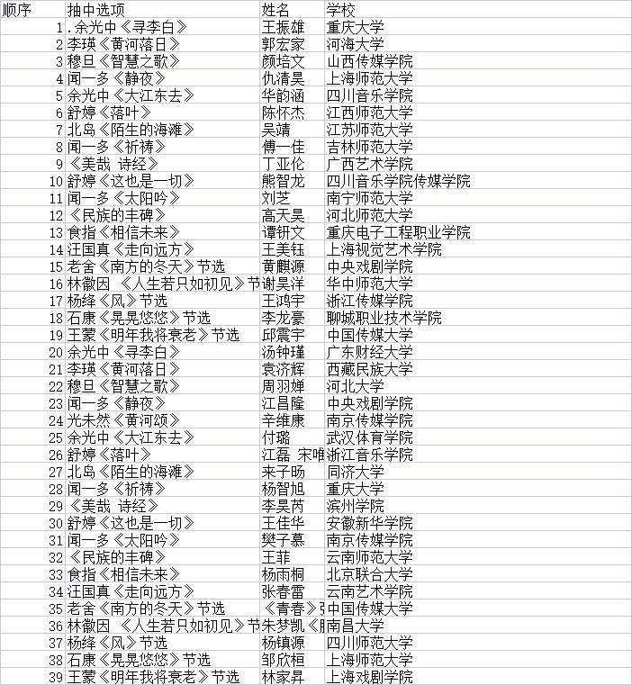 11月19日,由教育部和国家语委举办的第三届“诵读中国”经典诵读大赛落下帷幕。该大赛在全国本专科院校大学生作品中评出全国总决赛大学组一等奖13个,二等奖26个,三等奖37个,优秀奖114个。