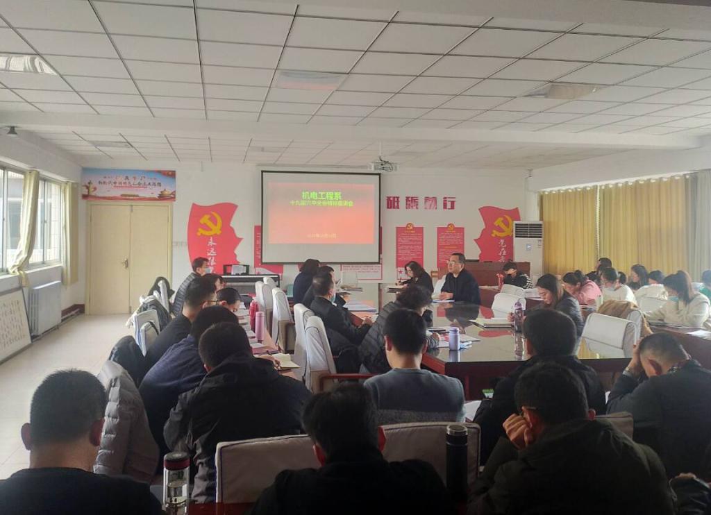 12月16日,机电工程系在1号教学楼四楼会议室开展党总支书记讲党课暨十九届六中全会精神学习交流活动,全体教职工参加。